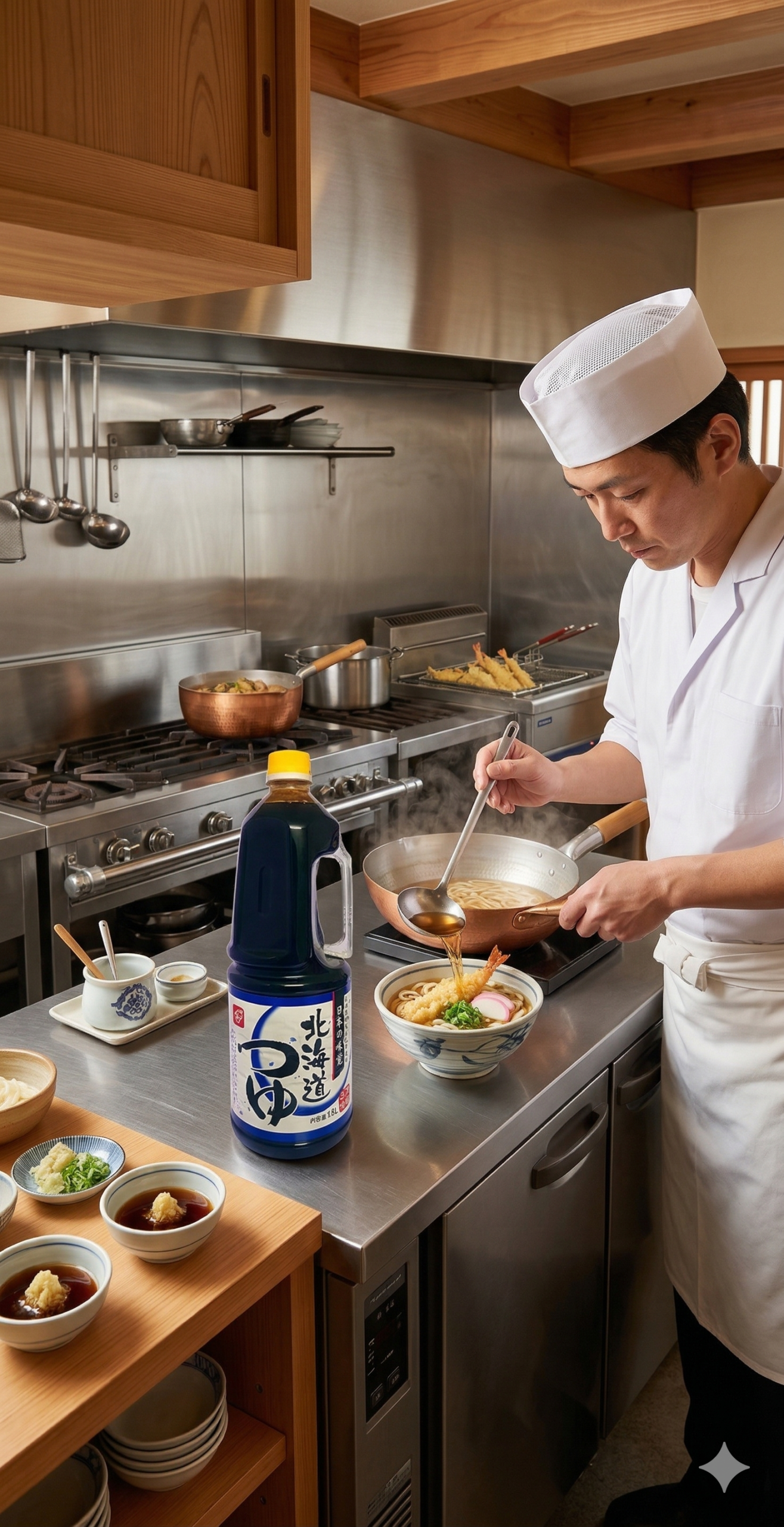 Hokkaido-style udon soup base (1.8L) — rich, full-bodied broth for udon and soba at scale.